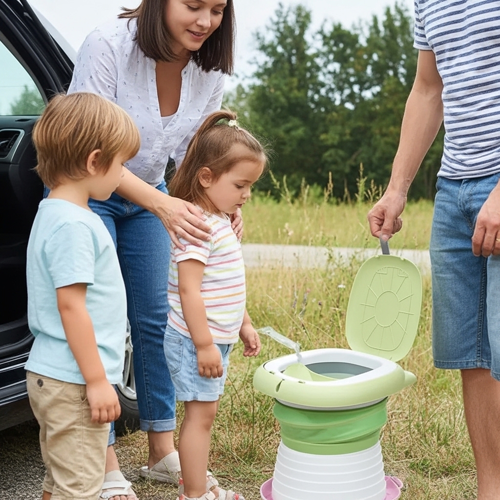 مرحاض محمولة للأطفال، حل عملي لكل الخرجات.